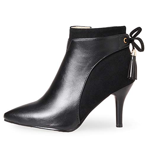 ELEEMEE Donna Moda Tacco Alto Stivali Appuntito Stivali Corto Polacchine Primavera Stivaletti Zipper Black Size 33 Asian