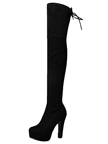 ELEEMEE Donna Moda Tacco a Blocco Stivali Stretch Platform Senza Chiusura Sopra Il Ginocchio Stivali Black Numero 36 Asiatico