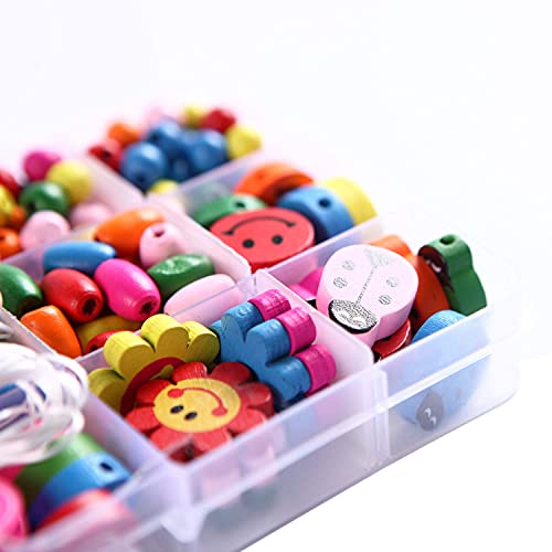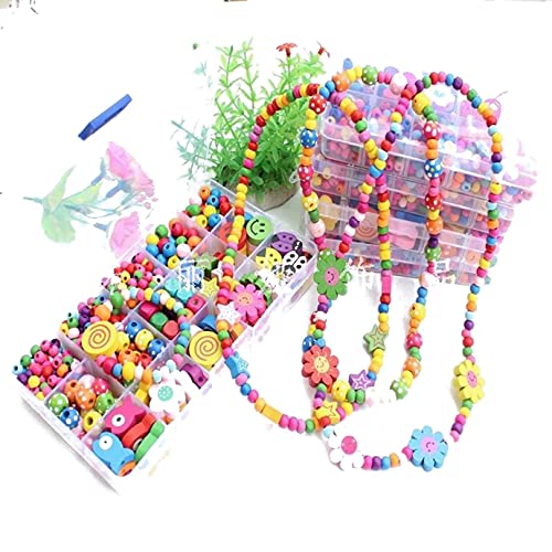 Eleery Set di 15 perline fai da te per ragazze, per fai da te, perline colorate da infilare per bambini, in legno per bracciali, gioielli, giocattoli fatti a mano, a partire dai 5 anni