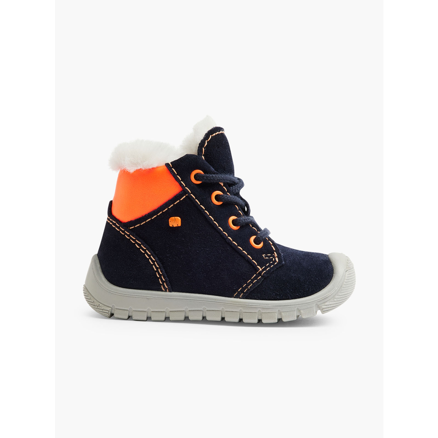 Dettagli del prodotto: Adatto ai primi passi Forma: Soxx Larghezza: media Colore: navy, neon orange Chiusura: chiusura in velcro a 2 vie Suola: suola in TPR resistente all'abrasione Materiale e cura: Materiale interno: pile, tessuto Tomaia: pelle