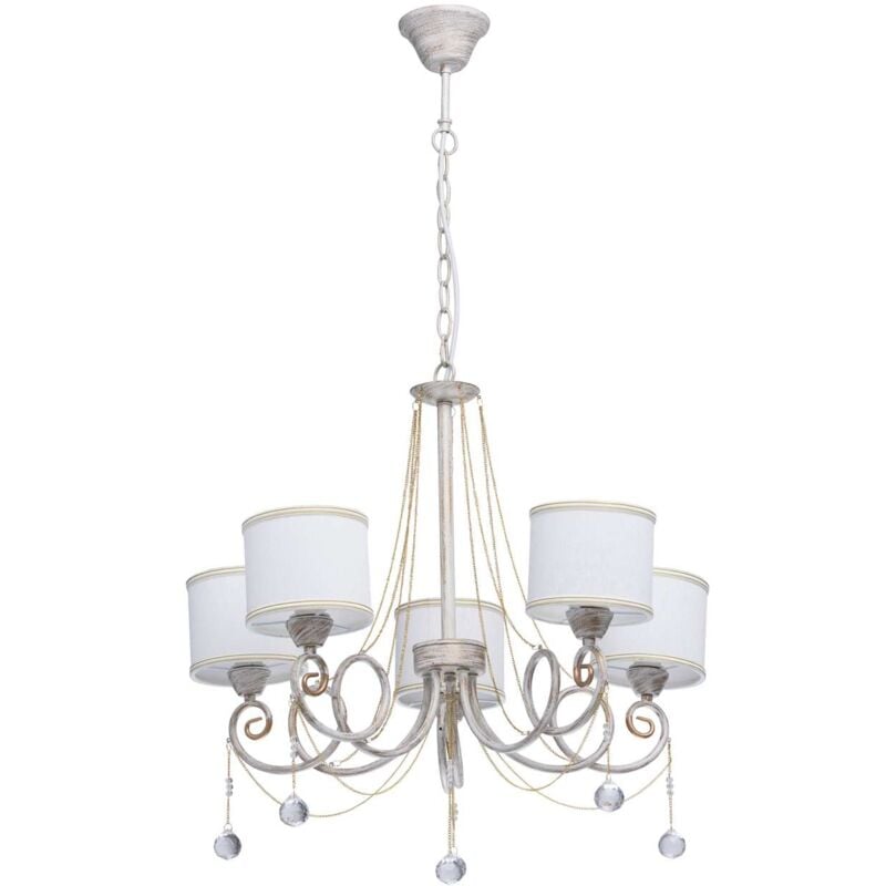 Metallo colore bianco oro paralume in tessuto colore bianco cristallo trasparente 5*40W E14 2700К Peso: 2,3 kg Materiale: Metallo Indice di protezione IP: IP20 Colore: Bianco Attacco: E14 Altezza: 96 cm Certificazione: QUESTO Diametro: 60 centimetri Dimmer per la regolazione dell'intensità: No Lampadine fornite: No Colore diffusore: Bianco Materiale del diffusore: Tissu/acrilique Telecomando incluso: Non Altezza catena (cm): 25 cm Garanzia: 2 anni Disponibilità: In magazzino