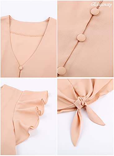 Elegancity Donna Camicia Rosa Chiffon Camicetta Donna Elegante Scollo a V Manica Corta Manica Lanterna Allentata Monocromo Camicia M