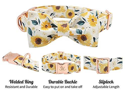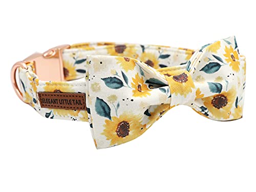 Elegant little tail Collare per cani con motivo girasole, per ragazze, con fiocco, regolabile, morbido collare per cani di taglia grande