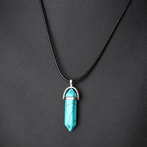 Elegant Rose 6 Collane Amicizia Donna Uomo con Ciondolo Pentente Prisma Esagonale di Quarzo Catenina Nera