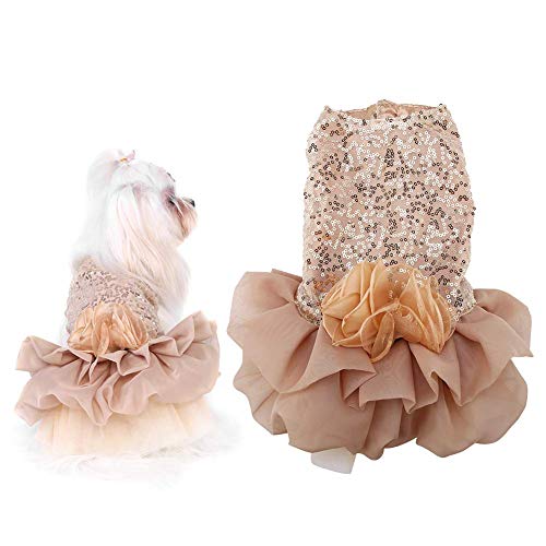 Elegante Abito da Sposa Gonna per Cani e Gatti,Cane vestito Pet piccolo cane vestiti paillettes tutu setoso cucciolo costume cane principessa elegante gonna costume da sposa(S-Gold)