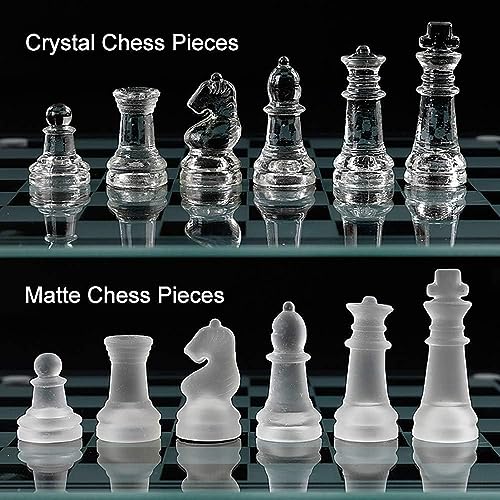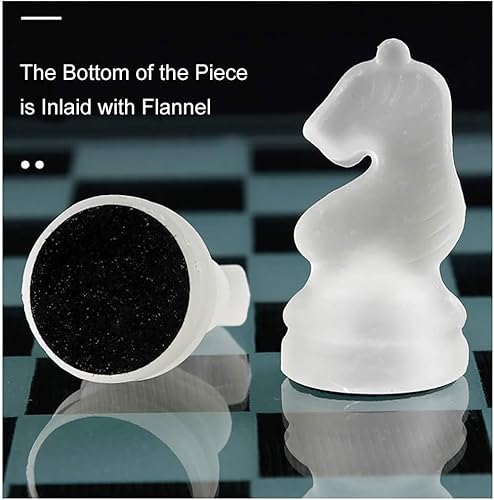 Elegante gioco a scacchi in vetro temprato, trasparente e satinato, vetro intarsiato in flanella resistente ai graffi, tavola in vetro a scacchi antiscivolo, gioco cerebrale interno ed esterno,