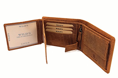 Elegante portafoglio, in vera pelle, da uomo, portamonete, formato oblungo, colore: marrone, dall'aspetto logoro, modello: L1598 marrone