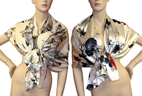 LTP Elegante SCIARPA Double Face - Doppia Faccia Effetto Seta Foulard,da Donna Coprispalle Stola Modello Fiori