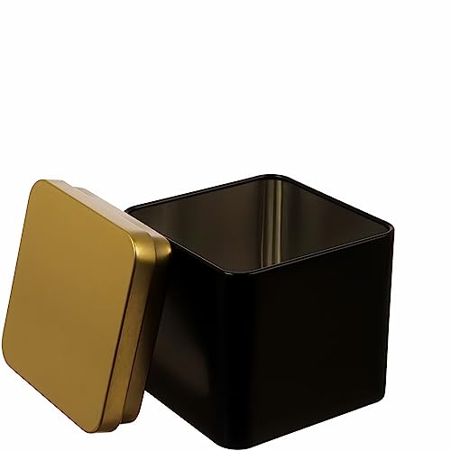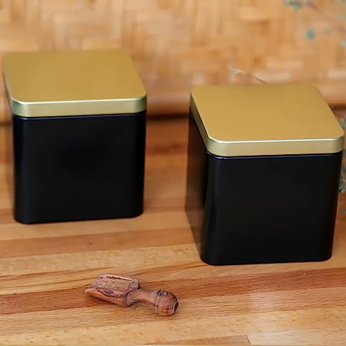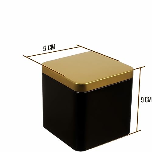 6 Eleganti contenitori per tè rettangolari in Metallo Nero e Oro Resistente agli aromi, per 150 g di tè | 9 x 9 x 9 cm (AxLxP) | Ideale Anche Come Contenitore per spezie