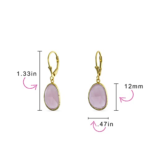Eleganti Orecchini Pendenti Con Pietra Sfaccettata Ovale Pastello Incastonata A Ghiera: Chalcedony Rosa Simulato Con Chiusura A Leva In Argento Sterling Placcato In Oro 14 Carati