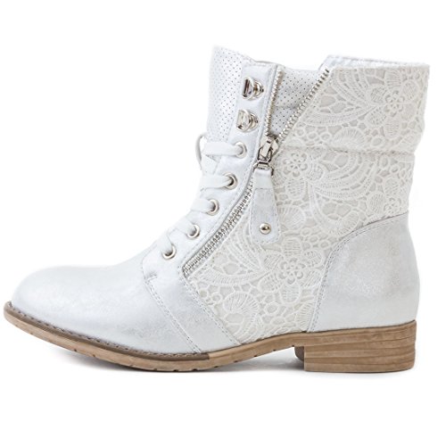 Eleganti stivaletti da donna in pizzo con effetto pelle di alta qualità