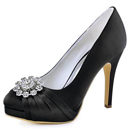 Elegantpark EP2015-PF Donna Punta Chiusa Pumps Piattaforma Tacco Alto Pompe Strass Satin Scarpe da Sposa della Festa Nuziale Nero EU 36