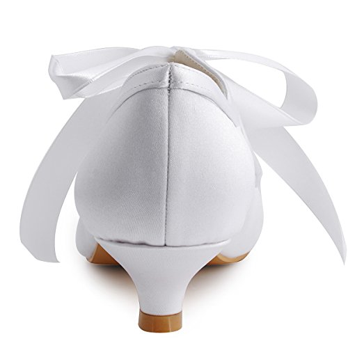Elegantpark EP41017 Raso Punta Rotonda Nastro Tacco Medio Scarpe a Tacco da Sposa Ballo