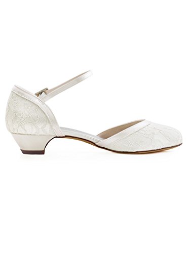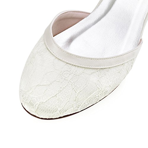 Elegantpark HC1620 Donne Punta Chiusa Tacco Basso e Largo da Sposa Fibbia Pizzo Raso Scarpe da Sposa Avorio EU 37