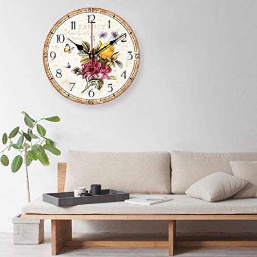 S.W.H Elegent shabby chic floreale digitale orologio da parete soggiorno camera da letto rotondo orologio 25,4 cm