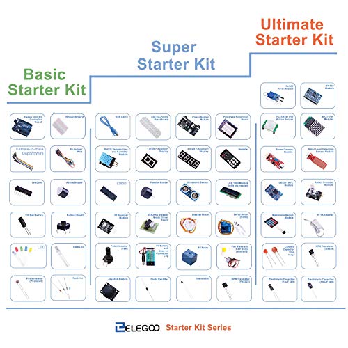 UNO R3 Board e Componenti Base: Il kit include il più nuovo UNO R3 board, un cavo USB e tutti i componenti base necessari per iniziare a creare progetti.