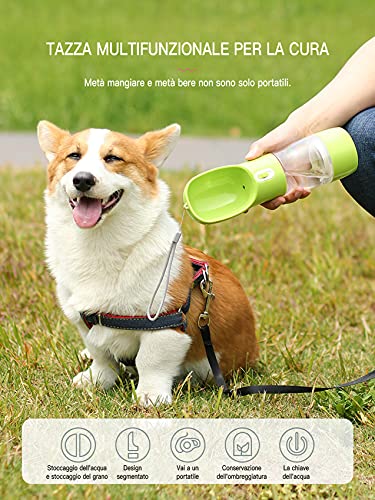 Elehui 500ml Borraccia Cane Borraccia Portatile per Cani Borraccia Multifunzione per Cani con Ciotola per Cani e Gatti Passeggiate Viaggi