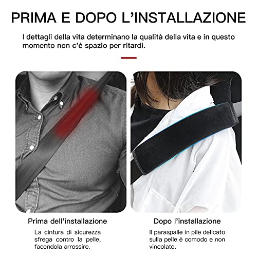 Facile da Usare: Installazione con velcro. Basta avvolgerli attorno alle cinghie della cintura di sicurezza, allacciare prima la cintura di sicurezza e poi farla scorrere nella posizione più adatta per te. L'imbottitura per cintura è removibile e lavabile.