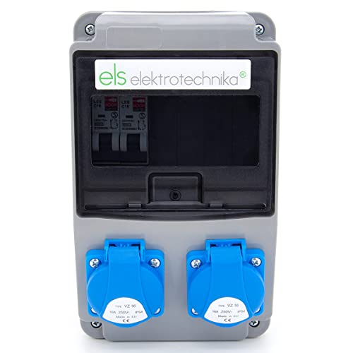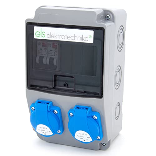 ELS Elektrotechnika distributore cablato da cantiere distributore da parete distributore di potenza con fusibili e prese Schuko 2x230V+2x interruttori magnetotermici C16, per ambienti interni/esterni