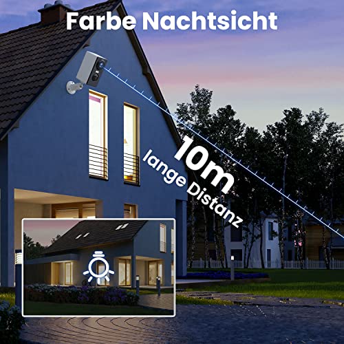 Elemage 2K Telecamera WiFi Esterno Senza Fili a Batteria,Videocamera Sorveglianza con Visione Notturna Colori,Rilevamento del Movimento Persona,Conversazione a 2 Vie,Impermeabile IP66,SD/Cloud
