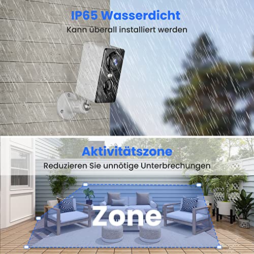 Rilevamento del movimento PIR e zona di allarme opzionale: questa telecamera di sicurezza wireless per esterni adotta la più avanzata tecnologia di rilevamento del movimento PIR AI, per catturare con precisione eventi sospetti e movimenti umani senza falsi allarmi;