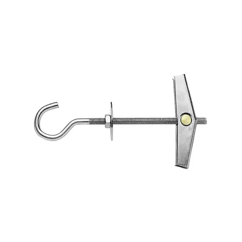 Ancoraggio a ginocchiera zincato adatto per tavole e blocchi forati, perapplicazioni a parete o sospese. versione gancio per occhi. in acciaio zincato.