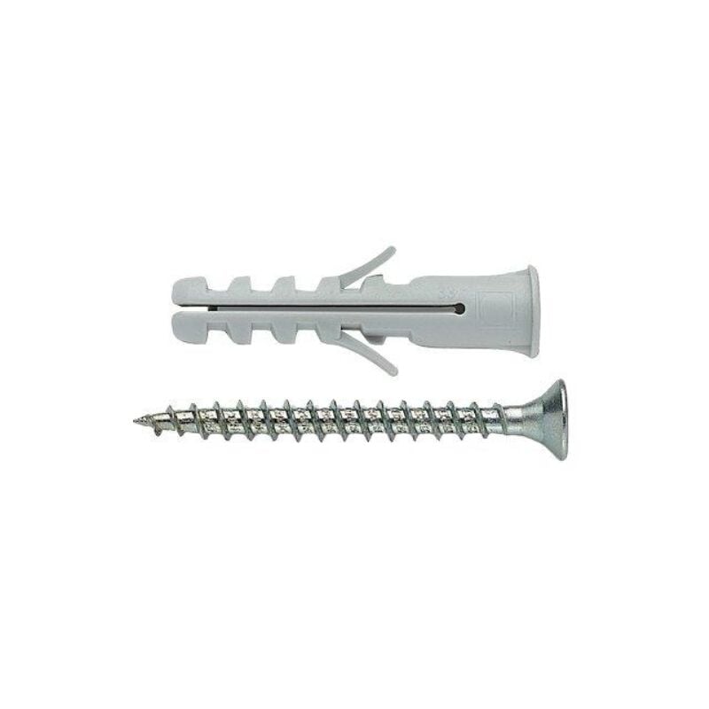 Tassello nylon eb/va elematic Vite tsp cava pz bordato eb/va 6 cf=pz 100 a 2 settori espandenti, con bordo e completi di vite in acciaio al carbonio zincocromato con testa svasata piana e impronta pz. provvisto di alette antirotazione di grandi dimensioni. ideale su calcestruzzo, mattoni pieni e pietra naturale.