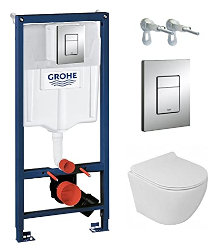 [Made by Grohe] Elemento a parete per WC, 2 quantità di risciacquo (3/6 litri), 1 quantità di risciacquo e risciacquo start/stop. Collegamento dell'acqua da sinistra/destra o posteriore/superiore. Installazione del collegamento dell'acqua senza attrezzi. Include Placca di pressione Skate Cosmopolitan 38732000 Cromo