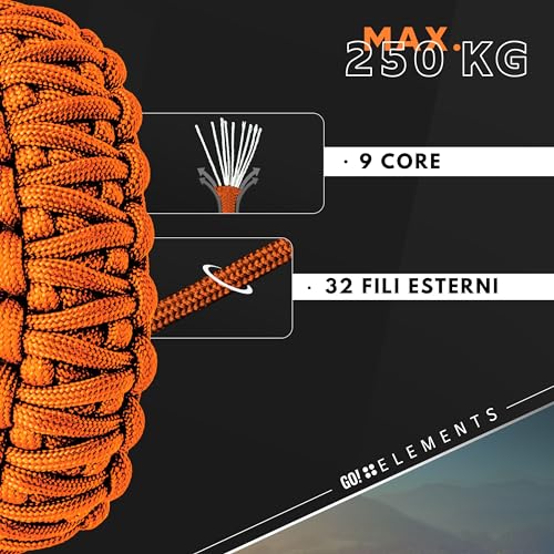 GO!elements 100m Paracord da Corda Nylon - 4mm Paracord 550 Originale Typ III - Adatto Come Corda Militare & Corda per Altalena | Max. 250kg, Colore: Arancia
