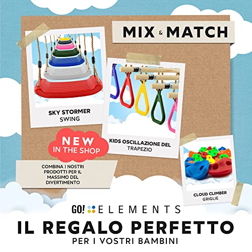 GO!elements altalena a trapezio per bambini - Sedile Altalena bimbi - Seggiolino Altalena Bambini - Sedili per Altalena per Bambini da Giardino - Altezza Regolabile - Antiscivolo - Colore: Verde