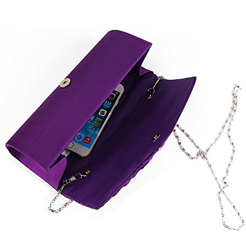 Ele Eleoption, borsetta da donna in raso a pieghe, con strass, da sposa, da ballo, da sera, per feste, Viola