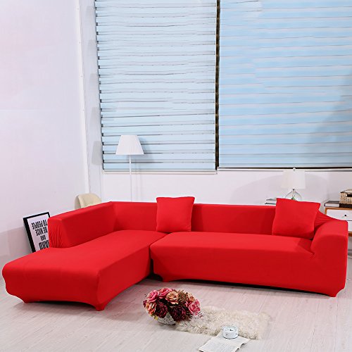 Ele ELEOPTION Copridivano, Copridivano Elasticizzato, Copridivano in Poliestere, Copridivano Morbido Antiscivolo in Tessuto Spandex, Rosso, 3 Posto (Lunghezza Divano 170-220cm)