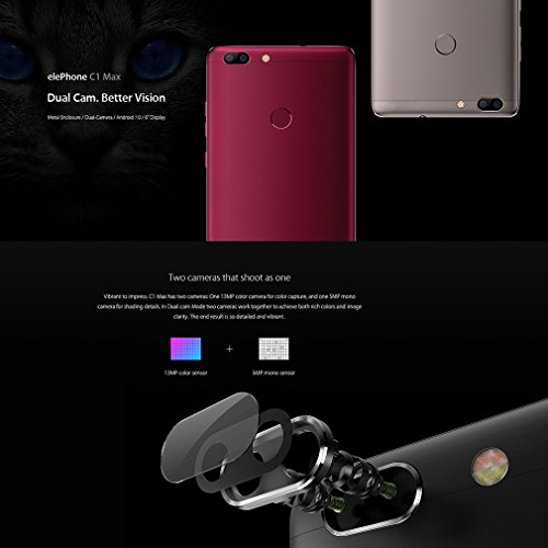 ELEPHONE Android 7.0 Smartphone 6.0 Pollici Dual Sim Dual Fotocamera 5MP+13MP, 32G ROM Impronte Digitale (C1 MAX, Nero)
