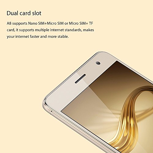Elephone A8 Smartphone, 5.0 " HD Display Android 7.0 3G Telefono Cellulari, MT6580 Quad Core 1.3GHz, 1GB RAM + 8GB ROM, 5.0MP +2.0MP, Dual Sim, Fingerprint Recognition, WiFi/GPS/Bluetooth Cellulare - Oro
