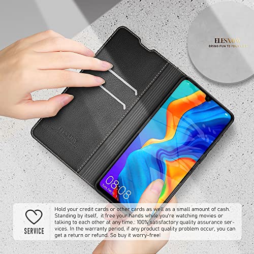 ELESNOW Cover per Huawei P30 Lite / P30 Lite New Edition, Flip Wallet Case Custodia per Huawei P30 Lite / P30 Lite New Edition (Nero)