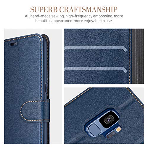 ELESNOW Cover per Samsung Galaxy S9, Flip Wallet Case Custodia in Pelle PU Premium, Slot per Schede, con Magnetica a Scatto per Samsung Galaxy S9 (Blu)