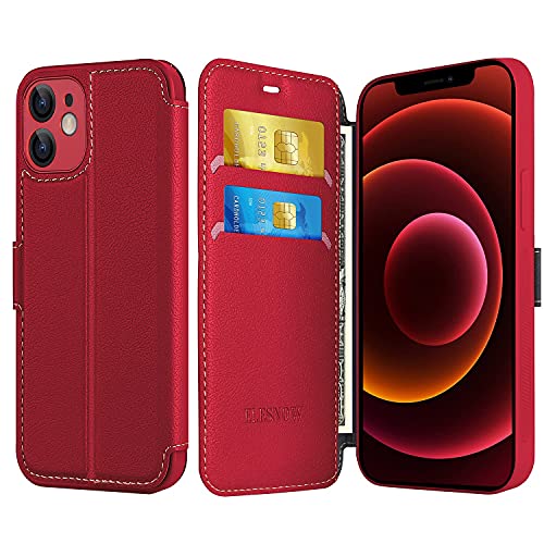 ELESNOW Custodia per Apple iPhone 12 Mini 5,4 pollici, in pelle di alta qualità, con chiusura magnetica, compatibile con Apple iPhone 12 Mini 5,4 pollici, colore: rosso