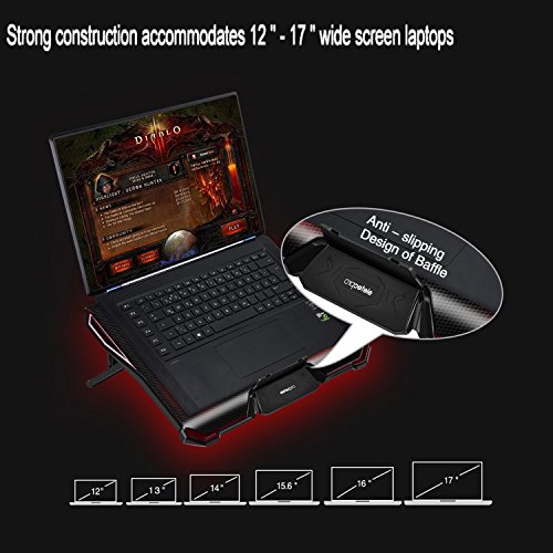 EletecPro Sistema di Raffreddamento per Notebook Ventilatoro di Raffreddamento Esterni Cooler Laptop Pad per Computer Portatili da 12"-17" 5 Ventilatori Silenziosi con Luci Rosse a LED Due Porte USB 2 Modello di Montaggio Regolabile