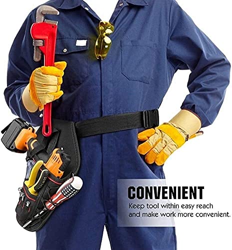 Borsa per attrezzi da tasca in tela Cintura Borsa per attrezzi da tasca piccola Con cintura in nylon regolabile Custodia da lavoro professionale resistente per elettricisti-Nero
