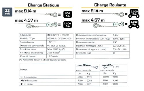 Verricello/Argano/Paranco elettrico 12V 2000 lbs con telecomando wireless