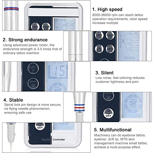 DERMOGRAFO TRUCCO SEMIPERMANENTE-【sicuro da usare】: la macchina tatuaggio trucco permanente ha un sistema silenzioso incorporato e un colore veloce che allevia il cliente dalla tensione emotiva e dal dolore, permettendo al tatuatore di lavorare rapidamente e comodamente.