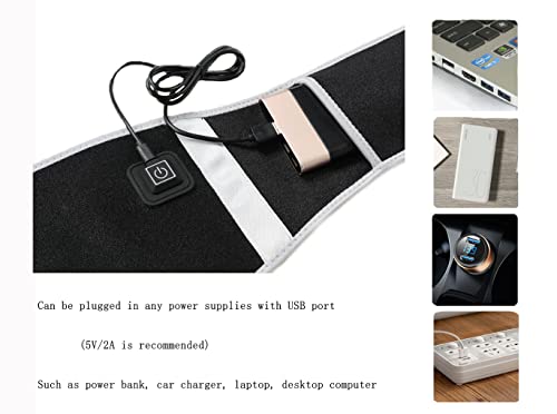 Riscaldatore elettrico con cavo USB, può essere collegato a qualsiasi alimentatore con porta USB, come power bank (si consiglia 5V/2A), caricabatterie per auto, laptop, computer desktop, ecc. Con una piccola tasca sulla cintura per tenere il tuo power bank. Riscaldato elettrico riscaldato, mantenendo la parte bassa della schiena calda per ridurre il dolore associato al freddo