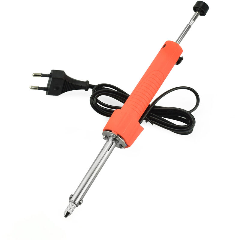Caratteristiche del prodotto: 1. Dimensioni compatte 2. Cavo di alimentazione in puro rame 3. Interruttore a grilletto sensibile 4. Tubo in acciaio inossidabile senza saldatura 5. Ugello interamente in metallo 6. Manico in nylon per alte temperature 7. Fusione dello stagno + rimozione dello stagno, operazione con una sola mano 8. L'aspirapolvere elettrico a doppio uso ha le caratteristiche di un bell'aspetto, una nuova struttura e un funzionamento conveniente. 9. Tutti i giunti di saldatura possono essere facilmente aspirati e i componenti che devono essere sostituiti possono essere rimossi dal circuito senza danneggiare i componenti e il circuito. 10. È molto comodo sostituire circuiti integrati e interruttori a pedale multipli 11. Le due fasi di riscaldamento con una sola mano e rimozione dello stagno possono essere eseguite contemporaneamente, in modo da assorbire e sciogliere accuratamente lo stagno e rimuovere le monete senza intoppi. 12. Può essere utilizzato come saldatore
