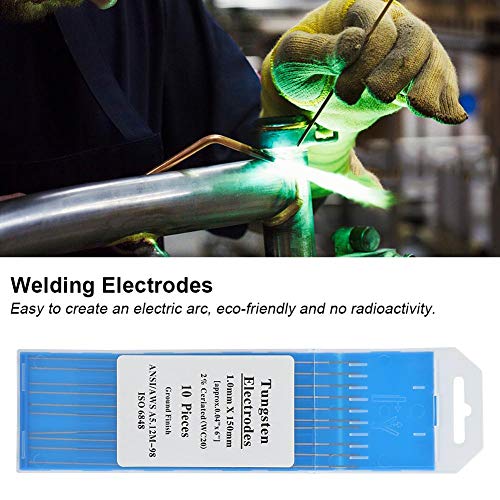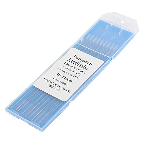 Elettrodi di tungsteno 10 pezzi, Elettrodi per saldatura, elettrodi di TIG di tungsteno di cerio WC20 per saldatura di acciaio al carbonio in acciaio inossidabile(1.0 * 150mm)