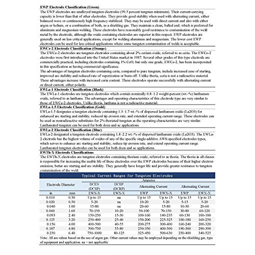 ottimo sostituto per elettrodi di tungsteno toriato. Ampia gamma di corrente e basso tasso di bruciatura. Facile inizio dell'arco e buona stabilità