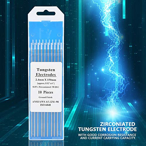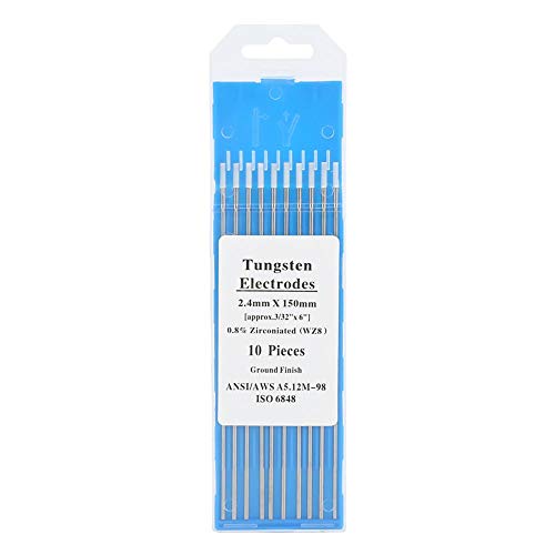 Elettrodo di tungsteno zirconato, 10 pezzi Elettrodi di tungsteno zirconato 1.0/1.6/2.4/3.2mm WZ8 Punta bianca per saldatura tig AC bianco(2,4 millimetri * 150 millimetri)