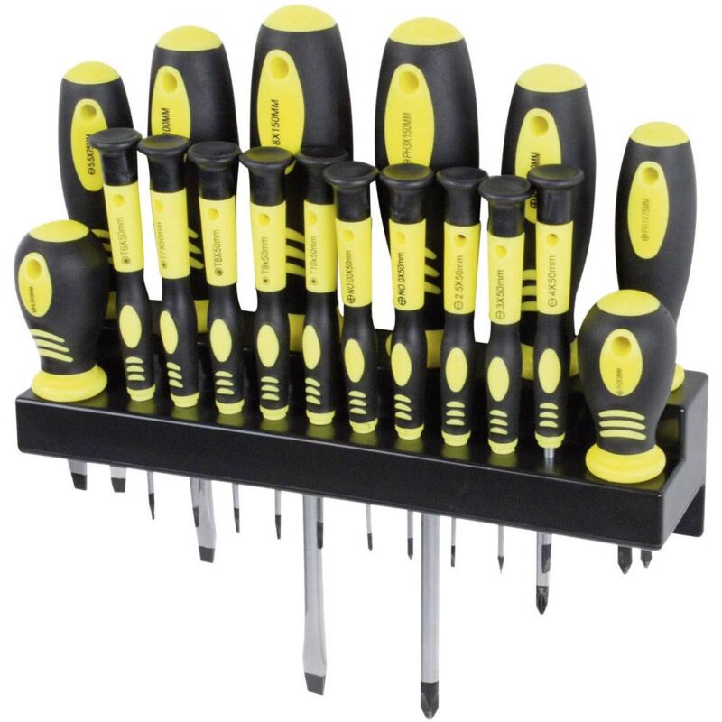 Dettagli tecnici Ambito di applicazione (cacciavite) Elettronica e meccanica di precisione, Officina e meccanica Forza Taglio, Croce Phillips, Esalobo Interno (TX) Materiale Acciaio al cromo vanadio Tipo prodotto Kit cacciaviti Punti di forza e dettagli Con punta magnetica Incluso nella consegna 10 cacciaviti per meccanica di precisione: 2.5 / 3.0 / 4.0 x 50 mm, PH 0 / PH 00 x 50 mm, T6 / T7 / T8 / T9 / T 10 x 50 mm x 8 cacciaviti da laboratorio, conformi GS: 6,5 x 38 mm, 5,5 x 75 mm, 6,5 x 100 mm, 8 x 150 mm, PH 2 x 38 mm, PH 1 x 75mm, PH 2 x 100 mm, PH 3 x 150 mm. Staffa di supporto a muro. Requisiti di sistema null