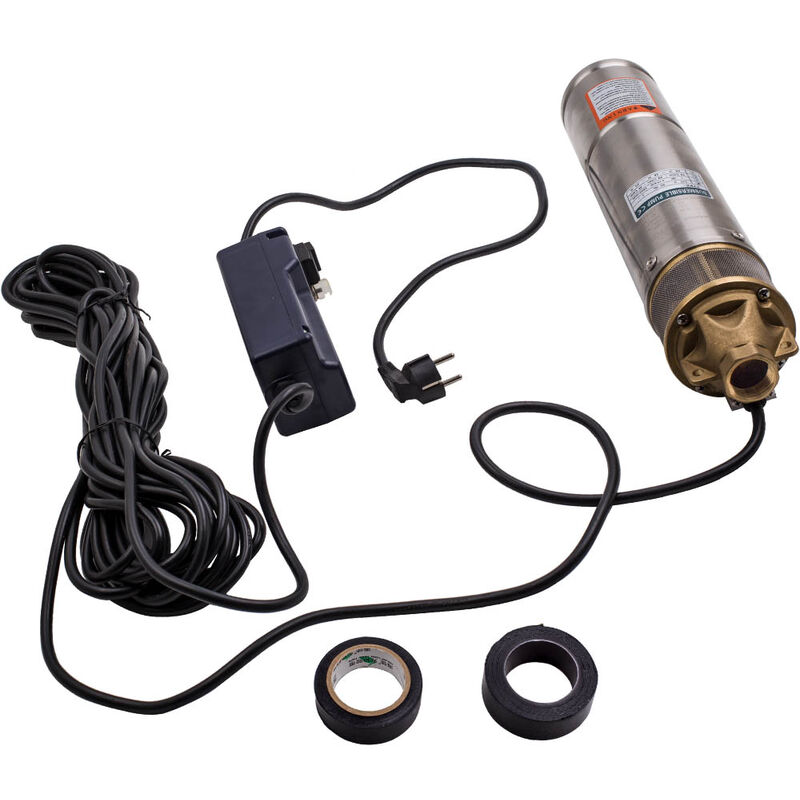 Applications: 1. Tank/Cistern filling 2. Village or family water supply 3. Water supply for farm 4. Swimming pool filling 5. Fountains 6. Water supply for bivouac or camping car 7. Solar water circulating system 8. Garden/courtyard irrigation systems 9. Livestock watering 10.Renewable energy projects Product Details: Power: 750W / 0.75 kW Voltage: 230 V / 50 Hz Protection class: IP 68 Diameter: 4 inches / 102 mm Pressure connection: 1 " Max. Head: 54 m Max. Water pressure: 5,4 bar Max. Flow: 2600 l / h Max. Water temperature: 35 ° C Cable length: 15m Pump length: 495 mm *Impellers made of brass *stainless steel axle Advantage - Powerful, robust high-pressure deep well pump with screw technology - Sand-compatible deep well pump suitable for the extraction of clear water with sand parts - Including engine protection switches and on/off switch - Warranty: 2 years warranty for any manufacturing defect - Best price, superior quality - Deliver quickly -High quality materials for durability
