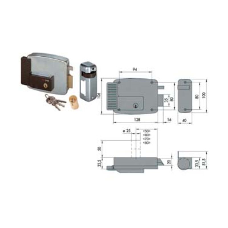 Mm.60 dx (11921601) scatola e bocchetta in acciaio con rivestimento in zinco, tensione 12v ac, scrocco autobloccante, apertura dall'interno con chiave, cilindro fisso tondo, dotazione: 3 chiavi Categoria merceologica: Elettroserrature e accessori - Sicurezza - Serrature elettriche applicare per porte in ferro