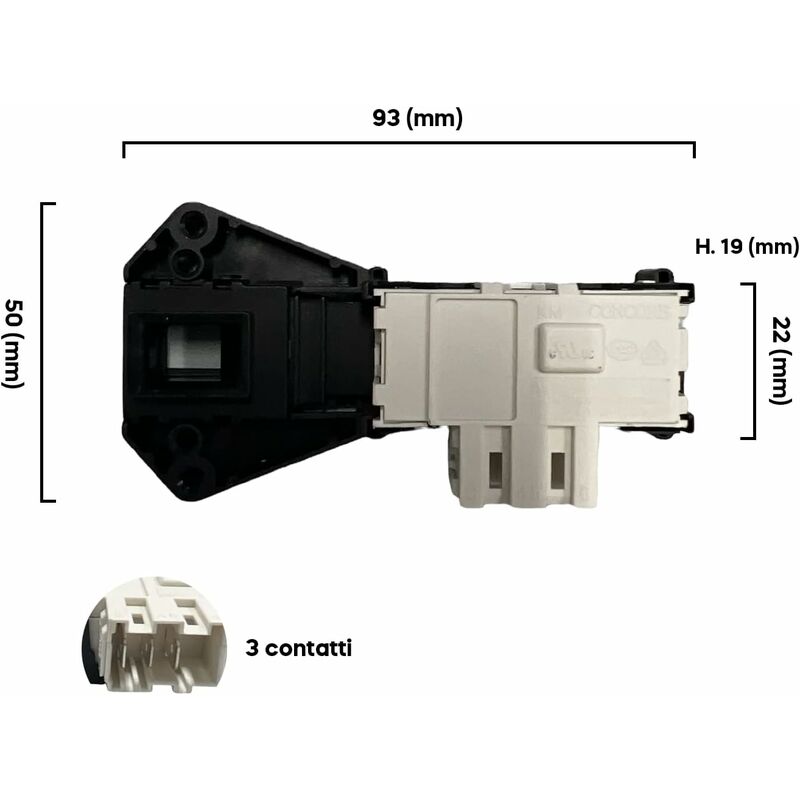 Elettroserratura Microritardatore per Lavatrice Samsung, Numero Contatti 3, Dimensioni 93x50 (mm), modelli Compatibili WC1704YPV-WD0804W8E-WF0702NBE. ✅ Un blocco dello sportello è un dispositivo elettronico progettato per fornire un ritardo, prima che lo sportello di una lavatrice si possa aprire. Se l'interblocco dello sportello è guasto, la lavatrice non si avvia, quindi non perdere tempo, e acquista questo ricambio di qualità, che farà tornare la tua lavatrice al meglio. ✅ L'interblocco svolge un ruolo chiave nella tua lavatrice, quindi è essenziale che esso sia perfettamente funzionante;
